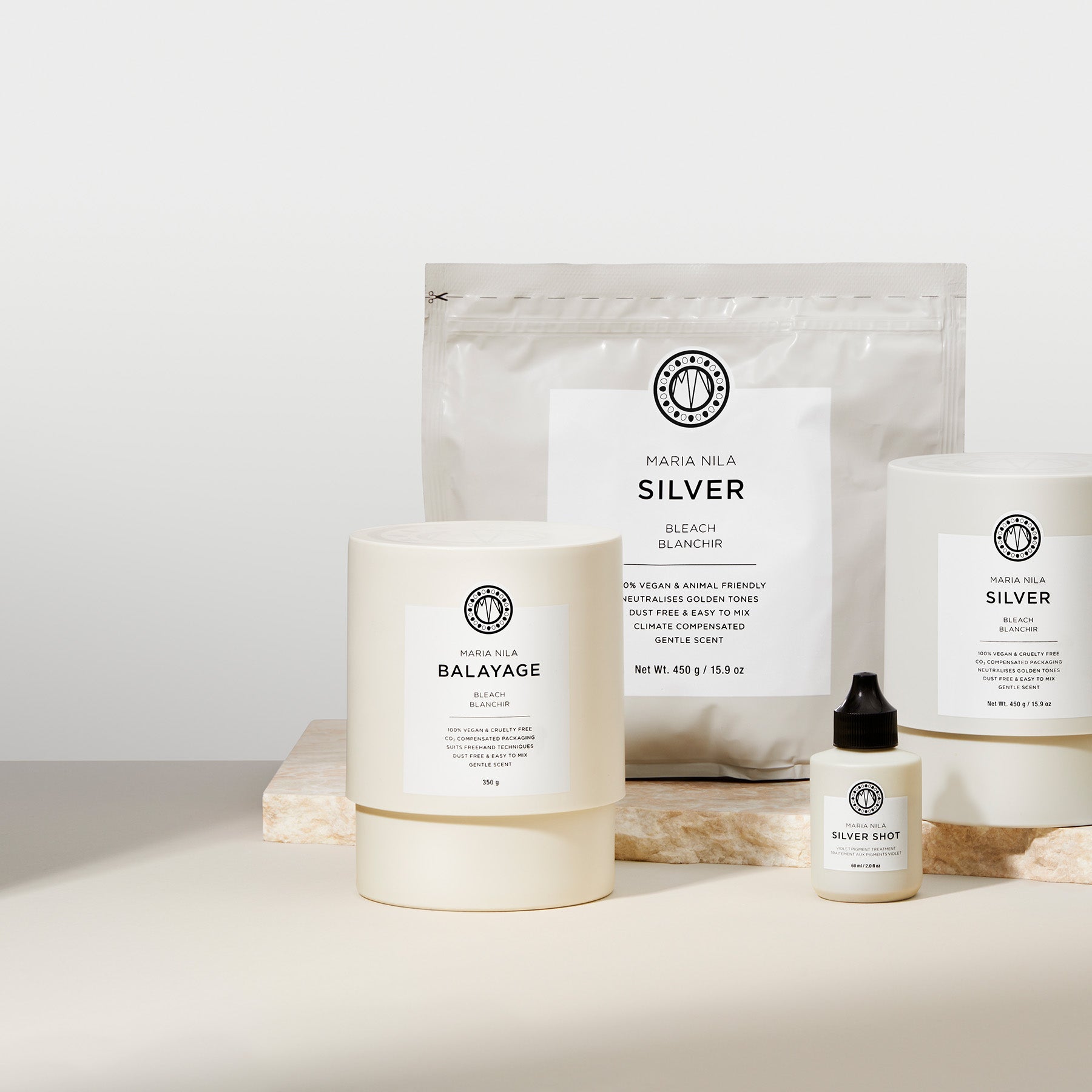 The Maria Nila Lightener Collection offers versatile, easy-to-use formulas that prioritize hair health and professional results. With natural ingredients like kaolin and xanthan gum, it’s perfect for precision techniques, toning, and post-bleach care.