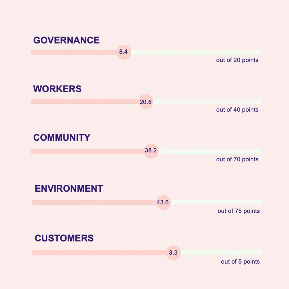 To be certified as a B Corp, a company must undergo a thorough review of its impact on governance, workers, community, environment and customers.
